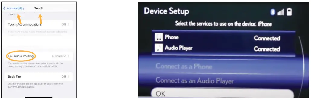 – For iPhone, confirm the phone is connected to your vehicle via Bluetooth and “Call Audio Routing setting” Keep it at “Automatic”