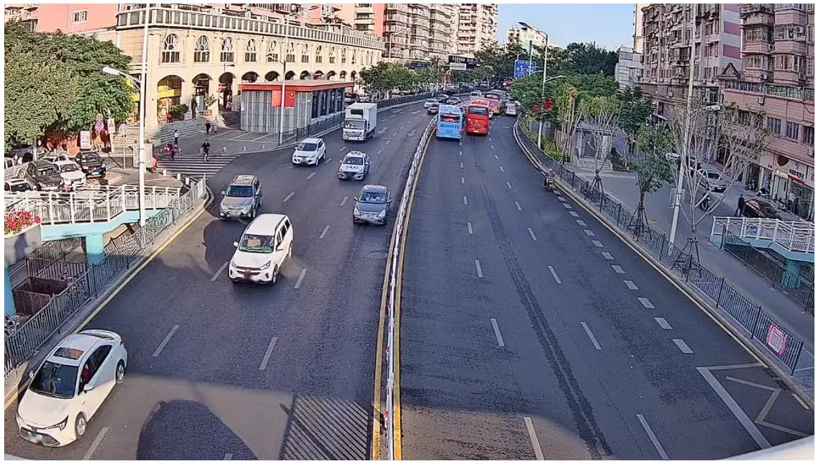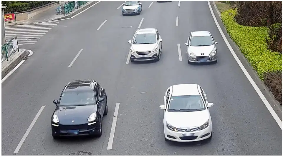 Vehicle Counting is similar to People Counting. It should be particularly noted that we should avoid overly large targets and ensure that the camera can capture the driving process of a vehicle for a long time. The following scenario is the most suitable case for Vehicle Counting. When the vehicle passes the detection line, the best pixel size is about 180*180 pixels.