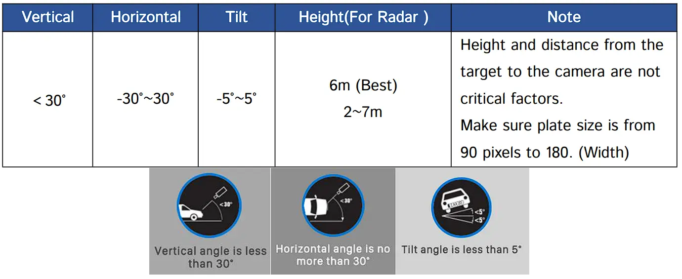 Besides, there are some special installation requirements of LPR and Radar Detection.