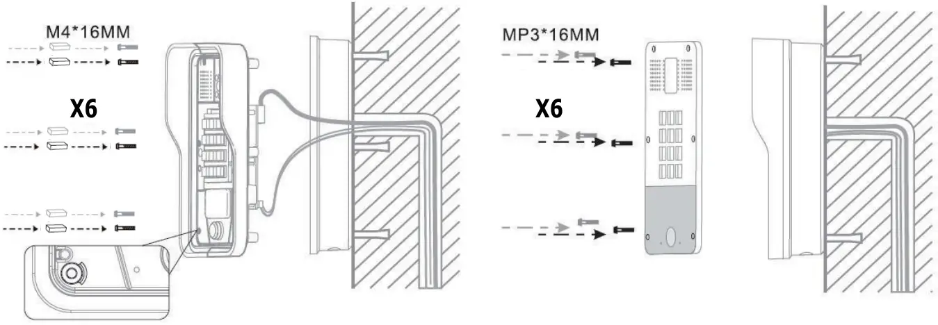Note: Before dosing the unit verify connections are functional: press the # button for 3 seconds to get a voice announcement of the device’s IP address.Input access password or press the indoor switch to check electric-lock installation
