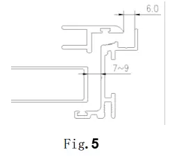 - Check inside the van for the gap between the door frame and the caravan frame. If necessary pack between the two to reinforce the join. (If the balance of the fixing is to be through the inner area of the frame, it is recommended to minimize the gap between the two frames to prevent distortion of the door frame and to ensure the door lock bolts engage when door is closed and the gap between the security door and the door frame is between 7to 9.As shown in Fig. 5