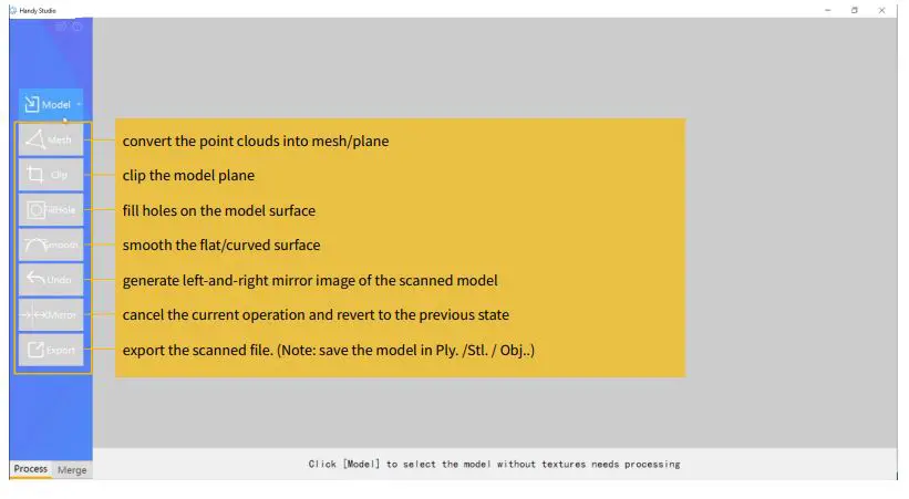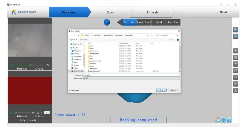 - Click “ ” to export the 3D model Name the file and save in ply., obj. or stl.