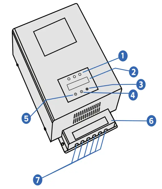 - MPPT Charge controller installation: Mount the MPPT charge controller vertically on the wall using the wall mounting clamp provided.