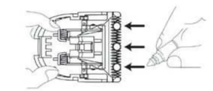- Guide the comb rails into the slots on the front of the clipper head. Then push the rear side of comb.