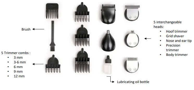 The hair guide comb can give you four different cutting lengths, namely 3mm, 6mm, 9mm and 12mm.