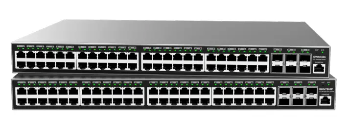 The GWN7806(P) is layer 2+ stackable managed switch that allows small-to-medium enterprises to build scalable, secure, high performance and smart business networks that are fully manageable. It supports advanced VLAN for flexible and sophisticated traffic segmentation, advanced QoS for priori- tization of network traffic, IGMP/MLD Snooping for network performance optimization, and compre- hensive security capabilities against potential attacks. The GWN7806P provides smart dynamic PoE output to power IP phones, IP cameras, Wi-Fi access points and other PoE endpoints. GWN7806(P) is easy to deploy and manage, including managed by the local Web user interface of the GWN7806(P) switch and CLI, the command-line interface. The switch is also supported by GWN.Cloud and GWN Manager, Grandstream’s cloud and on-premise network management platform. The GWN7806(P) is the best value enterprise-grade managed network switch for small-to-medium businesses.