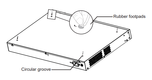 - Peel off the rubber protective paper of the four footpads one by one, and stick them in the corresponding circular grooves at the four corners of the bottom of the