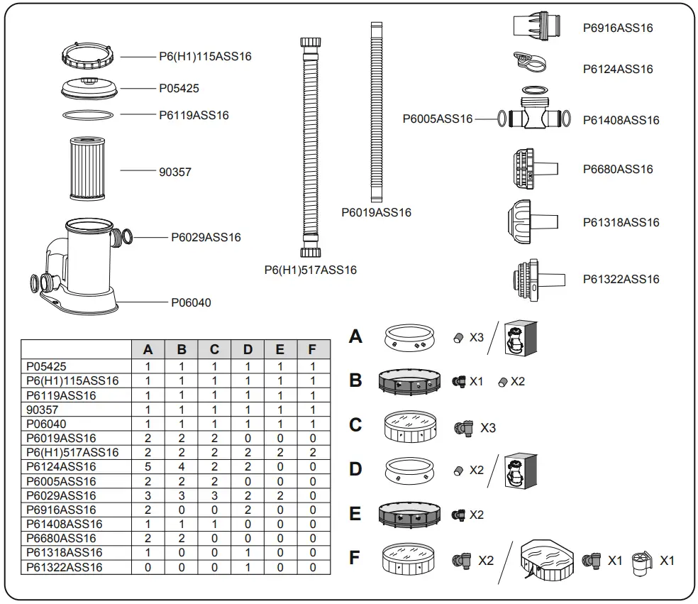 NOTE: Please examine equipment before use. Notify Bestway at the customer service address listed on this manual for any manufacturing defect or missing parts at the time of purchase. Verify that the equipment components represent the filter pump model that you had intended to purchase.