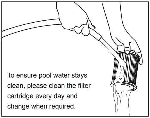 IMPORTANT: To ensure pool water stays clean, please clean the filter cartridge every day. For sanitary reasons we suggest replacing the Filter Cartridge with a new one every two weeks.