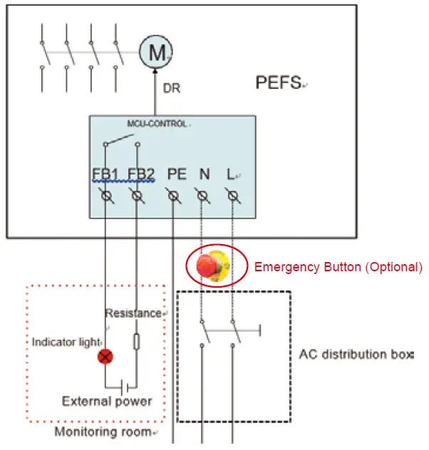 If the temperature inside the PEFS enclosure exceeds the 70℃, the PEFS will automatically switch to OFF to protect the internal components and create a safe situation. When the installation is checked and the PEFS is not affected, the PEFS can be switched ON again by removal and re-applying the AC voltage to the PEFS. The PEFS will also automatically switch to OFF if there is an internal failure. If this occurs please try to reset the PEFS by removal and re-applying the AC voltage to the PEFS.