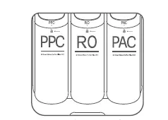 PP Cotton & Activated Carbon filter ( PPC) x 1 Reverse Osmosis Membrane filter (RO) x 1 Post Activated Carbon filter (PAC) x 1
