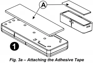 - Peel away the release liners from the two strips of double-sided adhesive tape and attach to the device and magnet.
