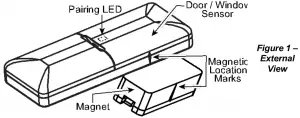 Note: If sensor pairing is not successful during the searching process by tripping the door / window sensor or by pressing the tamper switch the searching process will restart. - Complete the pairing procedure on the security panel (see the pairing instructions in the security panel’s installation guide).