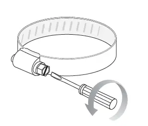 Loosen and completely remove the end of the metal strap by turning the captive screw counterclockwise with a flathead screwdriver.