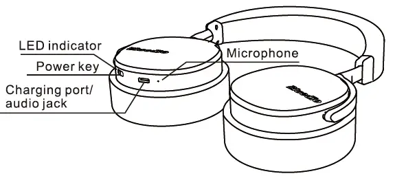 Switch the power key on/off to turn the headset on/off.