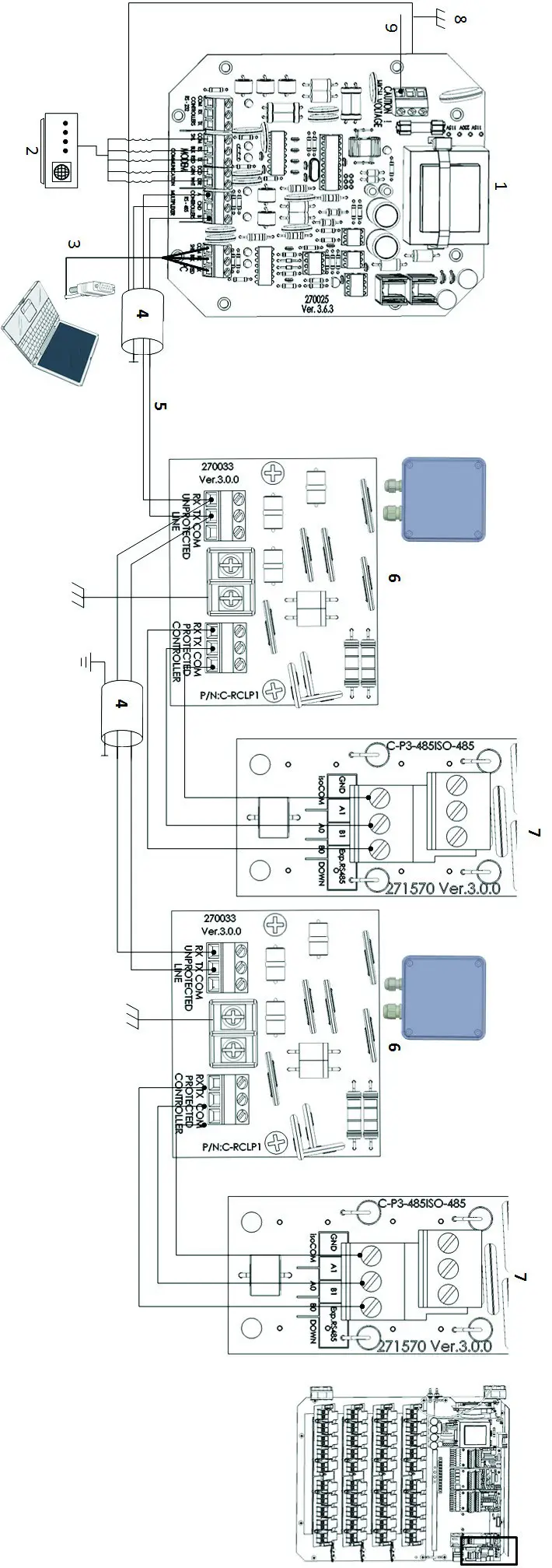 | 3 | See Table 2: Shielded cable length and baud speed | 6 | Controller and communication card |