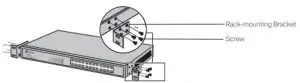 - After the brackets are attached to the device, use suitable screws (not provided) to secure the brackets to the rack, as illustrated in the following figure.
