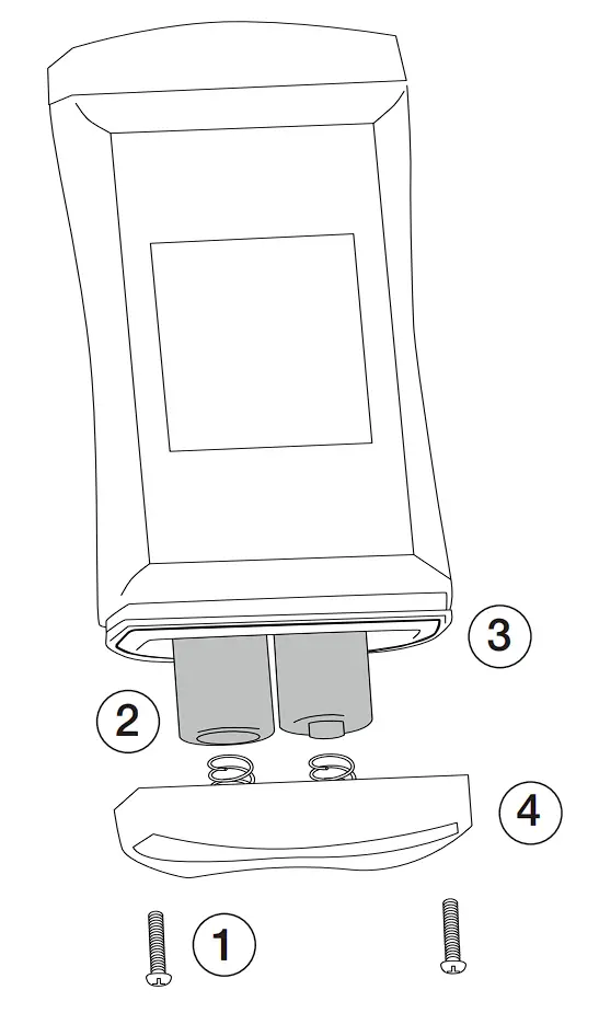 Replace the two AA batteries (2). Ensure that the polarity is correct. It must be possible to insert the batteries in the correct position without using force.