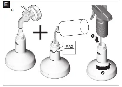 Always clean the product thoroughly after use. Remove the suction head from the main body and rinse. Whilst suction head (2) is removed from the machine, fill the dirty water tank (7) via the suction head aperture to the max line with clean, warm water. DO NOT fill the dirty water tank (7) via the drain hole. Shake the machine and pour the water out via the drain plug(8).