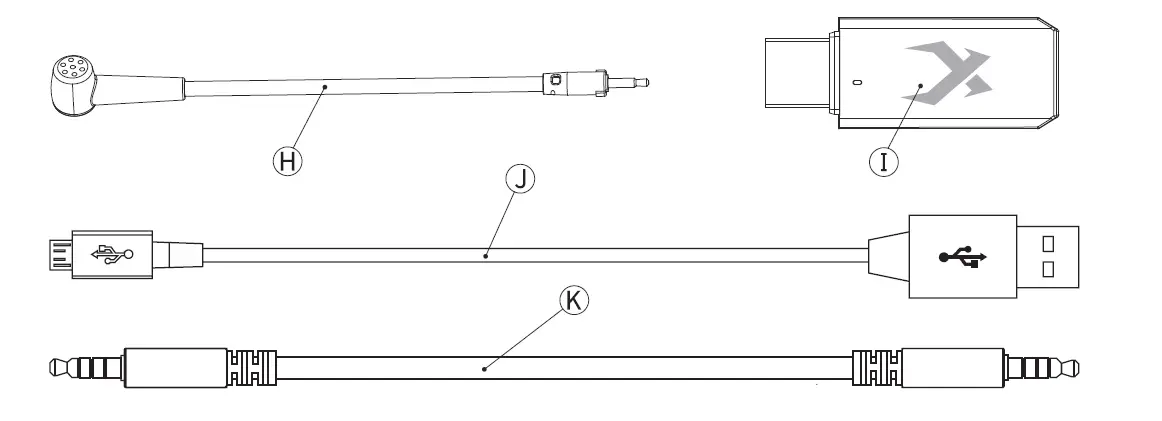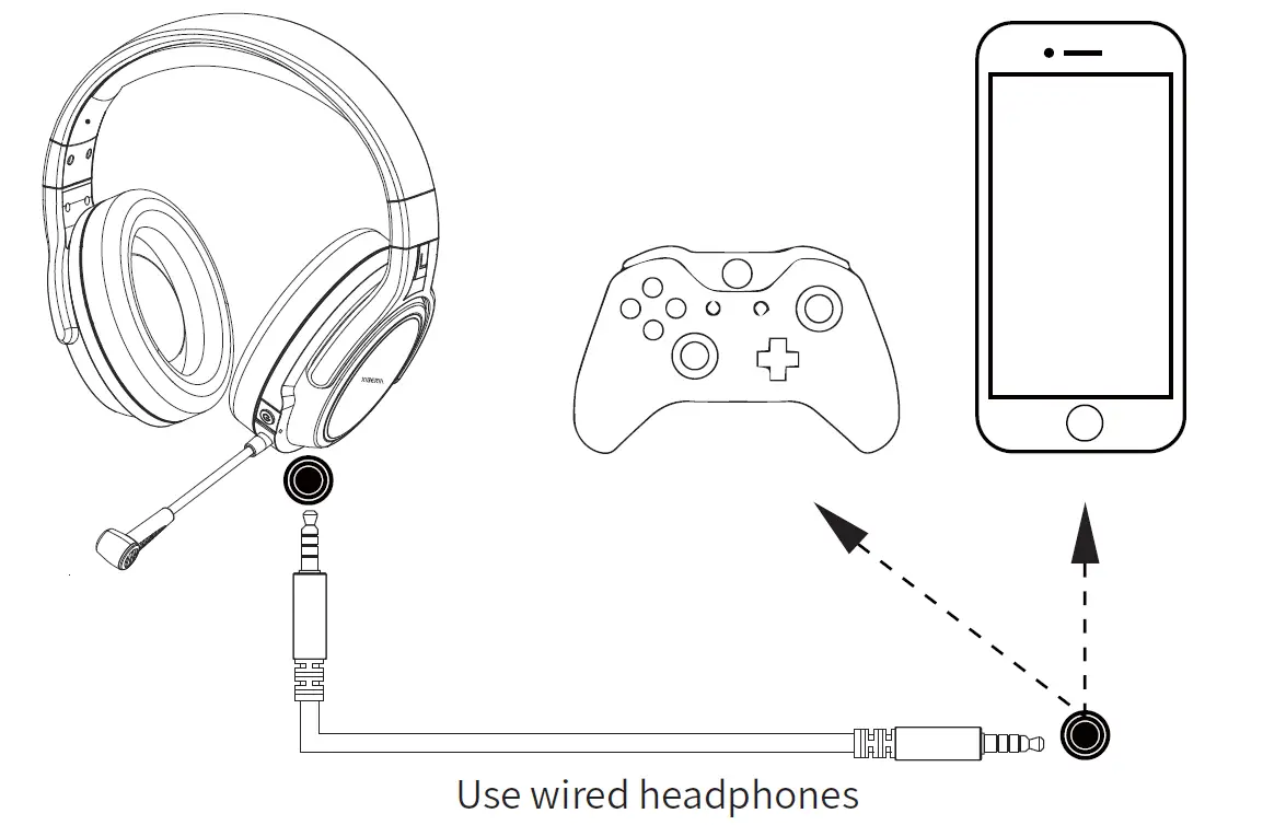 The headset can be used as a wired headset with the included 3.5 mm audio cable. To use the headset in wired earphone mode: