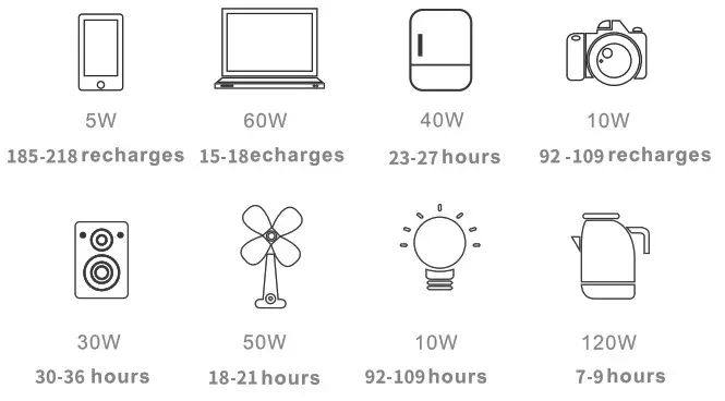 Before use, you need to check whether the rated working voltage of your electrical appliance and load matches the output voltage. When using AC output, you need to check whether there is an overload risk. (You can use AC (alternat- ing current} and OC (direct current} output modes at the