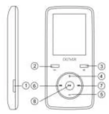 | ④ | Volume UP | ⑧ | PLAY / PAUSE / ON – OFF |