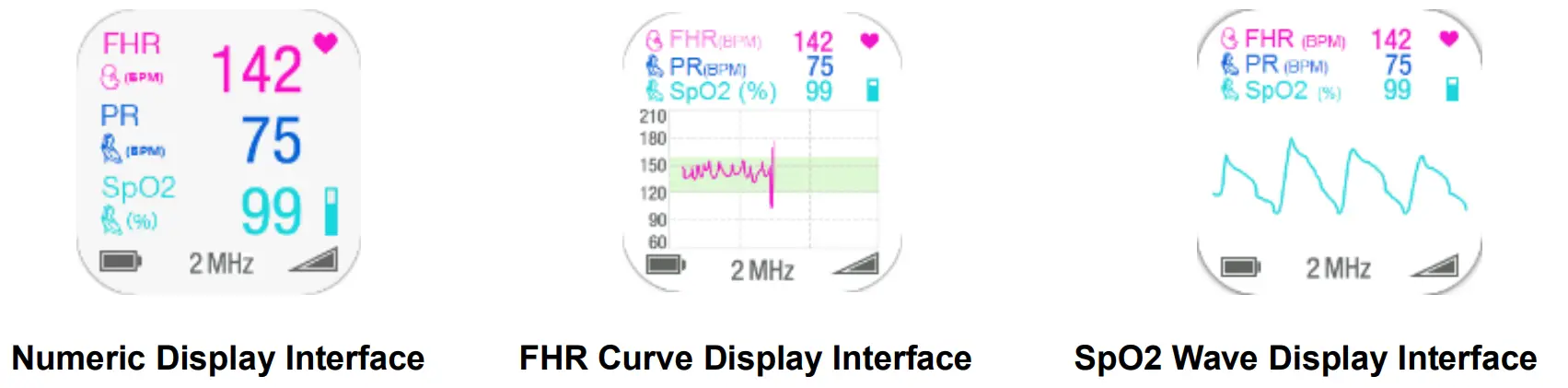 | 4 | Fetal heart signal quality indicator | Displayed on the bottom right corner of the screen and there are three levels, representing poor, acceptable and good signal quality. | |