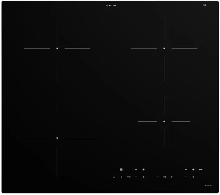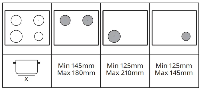 | Diameter of circular cooking zones (Ø) | Left front Left rear Right front Right rear | 21.0 cm 18.0 cm 14.5 cm 18.0 cm |