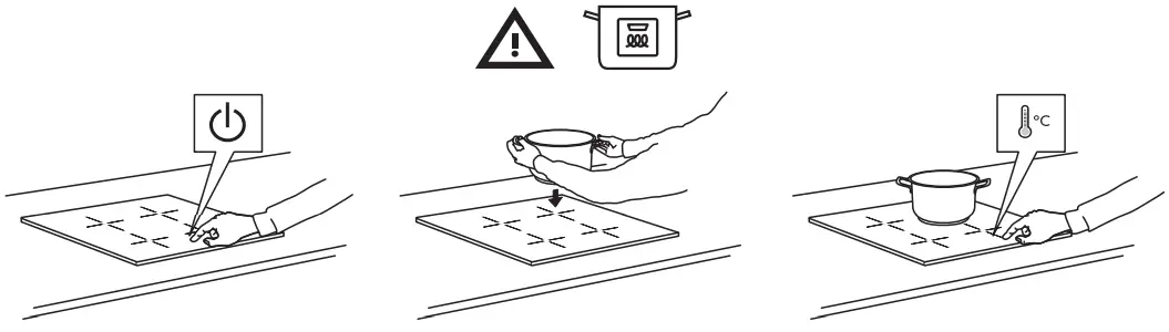 The indicator signals that the cookware is incorrect or too small, or there is no cookware on the cooking zone.