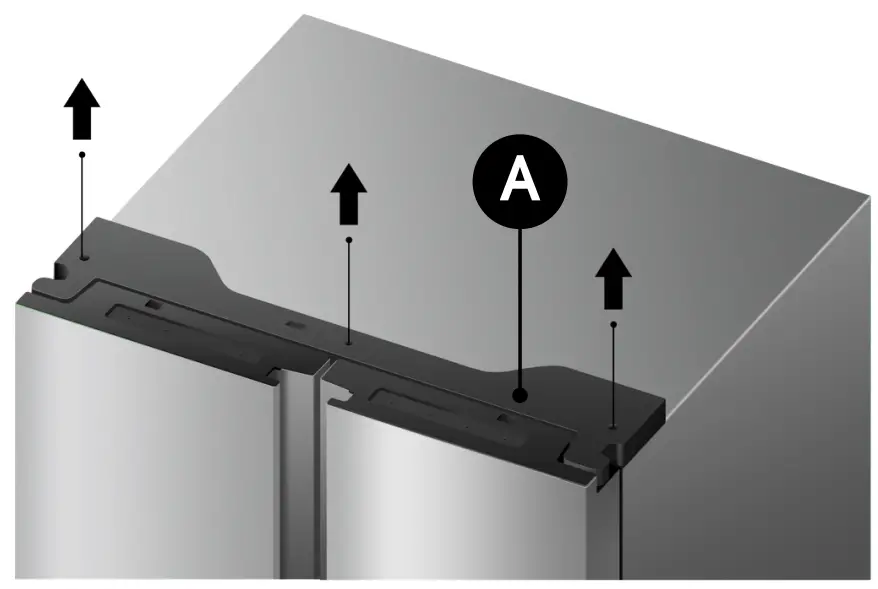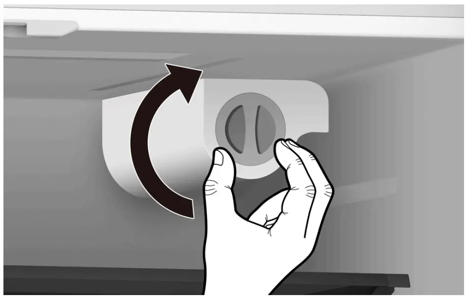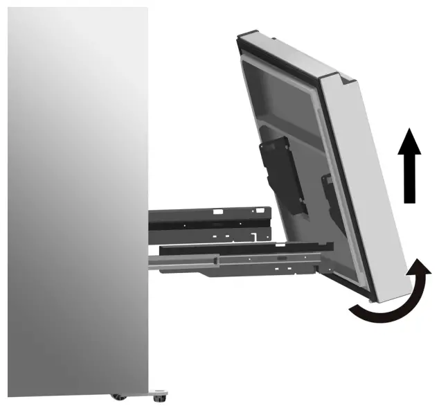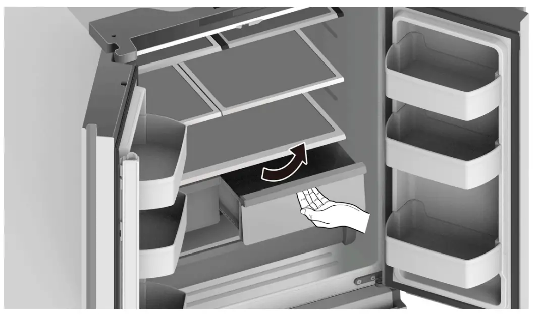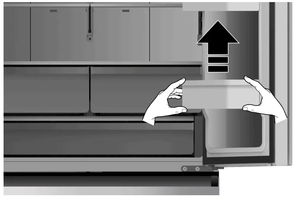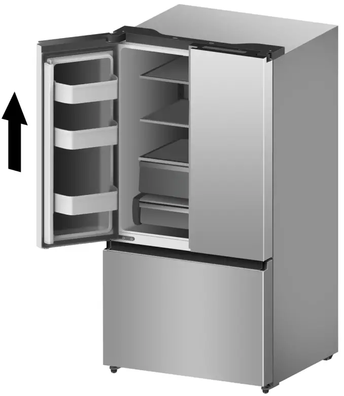 - Pull out the freezer door and lift it upin the direction of the arrow.