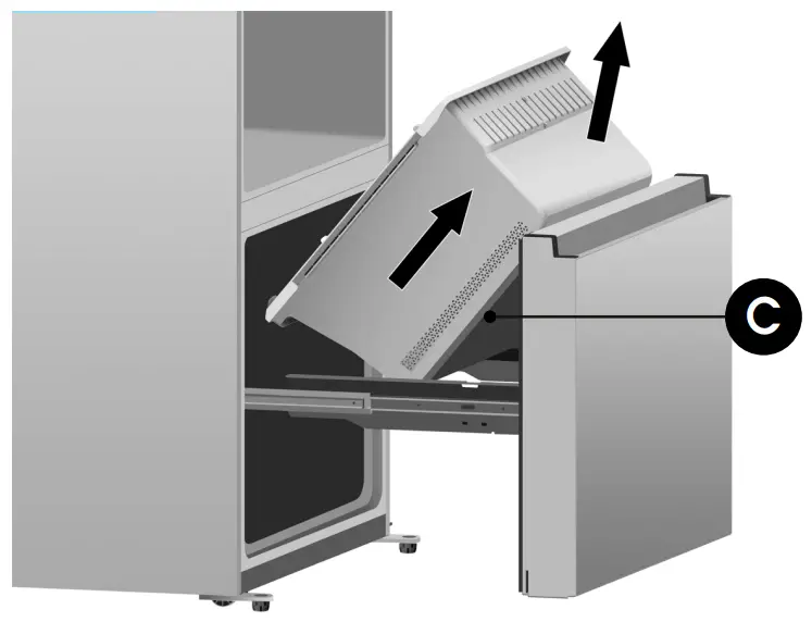 - Remove the lower freezer drawer (C) by lifting it up.