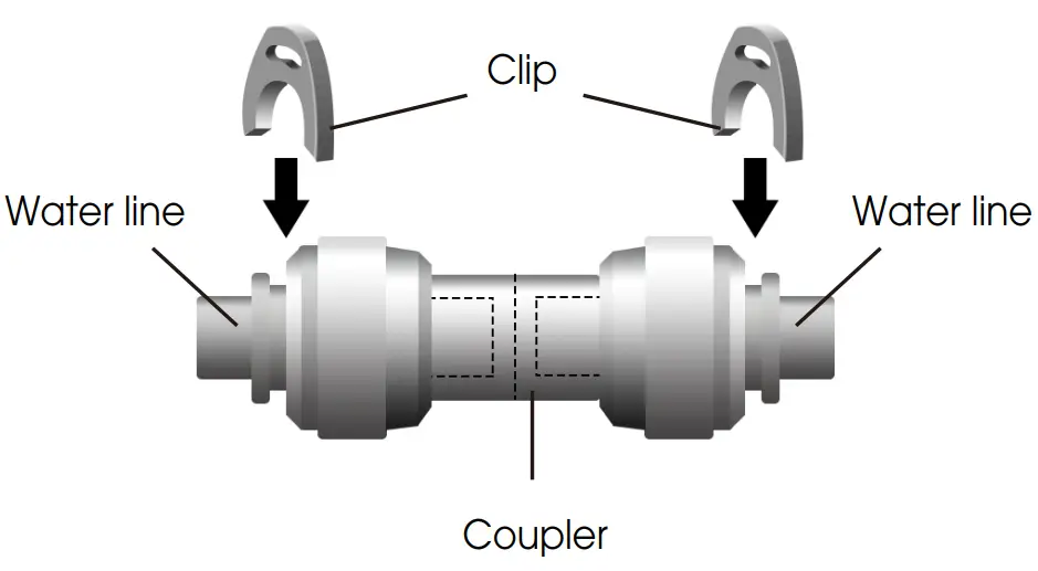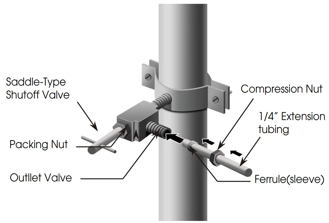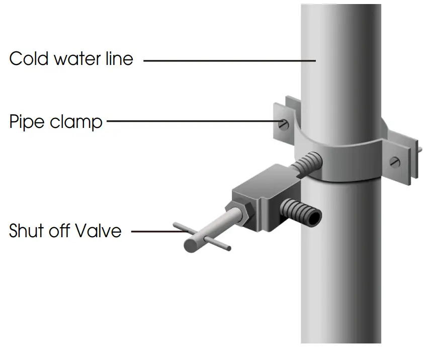 | The water connection must be made by a qualified plumber. Operation outside the water pressure range may cause malfunction, severe and damaging water leaks. Under normal conditions, a200cc (5.75 oz.) cup can be filled in about 10 seconds. If the refrigerator is installed in an area with low water pressure (below 30psi), you can install a booster pump to |