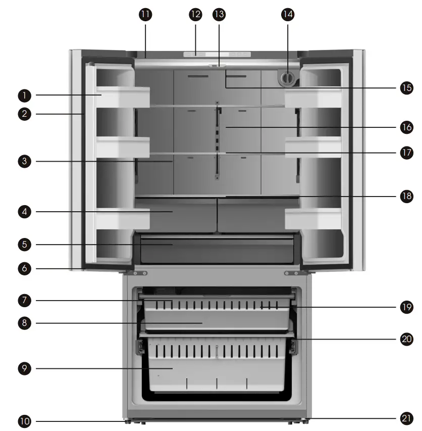 - If the diagram shows the correct combination for the drawers, crisper and shelves, do not adjust the combination as this is designed to be the most energy efficient configuration.