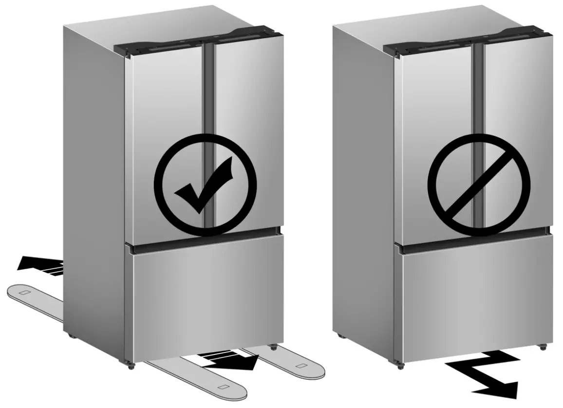 For proper installation, this refrigerator must be placed on a level surface of hard material that is the same height as the rest of the flooring. This surface should be strong enough to support a fully loaded refrigerator. The rollers, which are not casters, should be only used for forward or backward movement. Moving the refrigerator sideways may damage your floor and the rollers