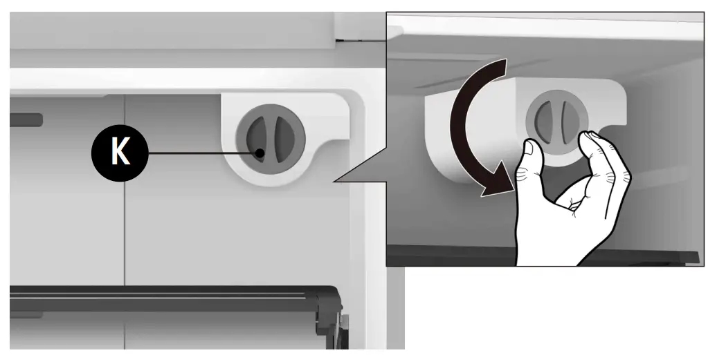 - Take out the upper freezer drawer (G) by lifting it up from the rail system.