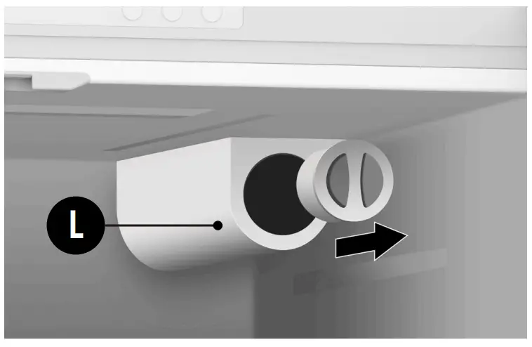 | The LED light must be replaced by a competent person. If the LED light is damaged, follow the steps below 1. Unplug your appliance. 2. Remove the light cover by lifting up and pulling out. 3. Hold the LED light with one hand and pull it while pressing the connector latch with the other hand. 4. Replace the LED light and snap it correctly in place and replace the light cover. |