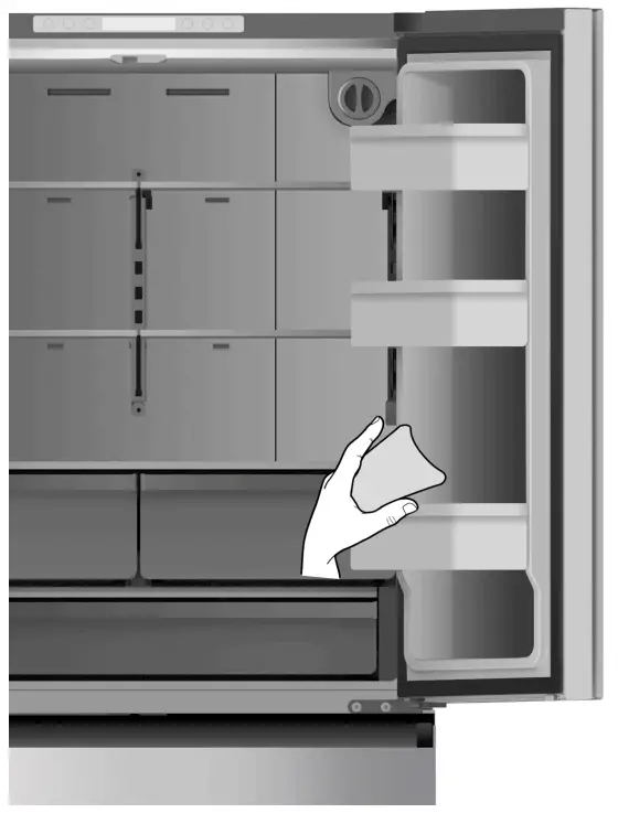 - Clean the doors, handles and cabinet surfaces with a mild detergent and then wipe dry with a soft cloth.
