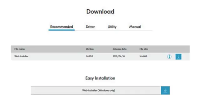 Access the following URL and select your model and OS. Download Center: https://kyocera.info/ For Windows Download and run the Web Installer and follow the on-screen instructions to install the driver and software.
