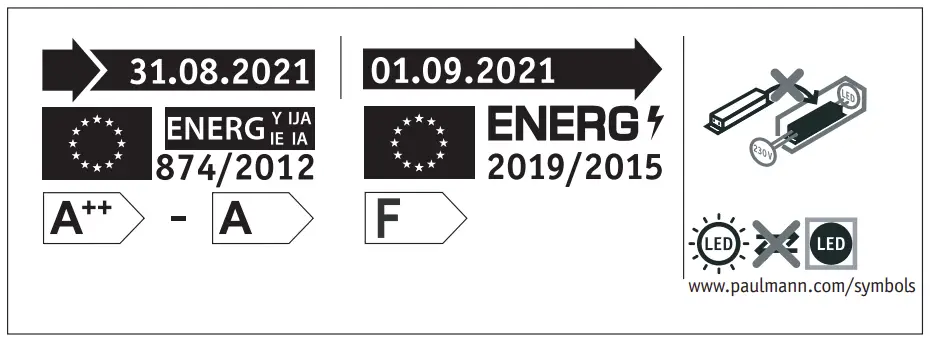 B This product contains a light source with energy efficiency class . Replaceability:(1) Light source or (4) operating device can be replaced by end users without permanent damage to the luminaire. (2) Light source or (5) operating device can be replaced by a qualified electrician without permanently damaging the luminaire. (3) Light source or (6) operating device is not replaceable, the luminaire must be replaced.