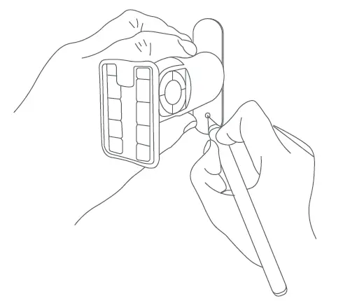 - Press and hold the Reset button on the back of the camera until the red light is flashing.