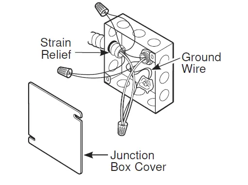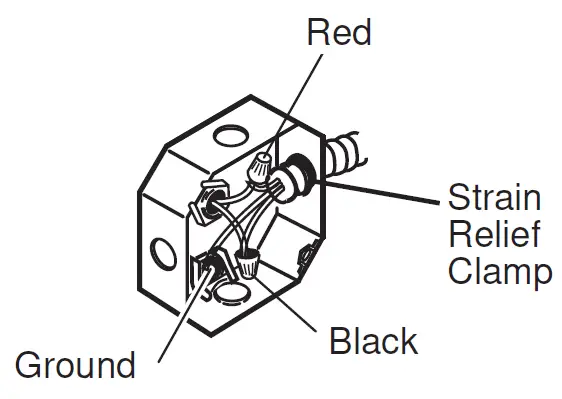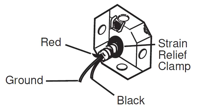 The conduit strain relief clamp must be securely attached to the junction box and the flexible conduit must be securely attached to the clamp.