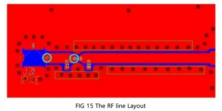 - RF line layout needs to match 50 ohms. The line width can be calculated by professional software. (Note: If it is a multi-layer board, The board thickness should calculate the distance from the RF trace layer to the next ground layer.)