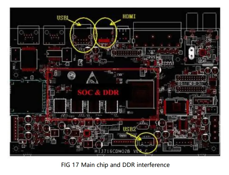 Motherboard interference comes from: high-speed data interface (HDMI) , the Operating frequency of main chip, DDR, DC-DC power supply. The method of avoiding interference according to the characteristics of various signals is also different. The main methods of interference avoidance include :