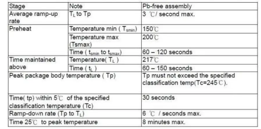 The lead-free reflux curve requirements of Wi-Fi module products are shown in figure18: