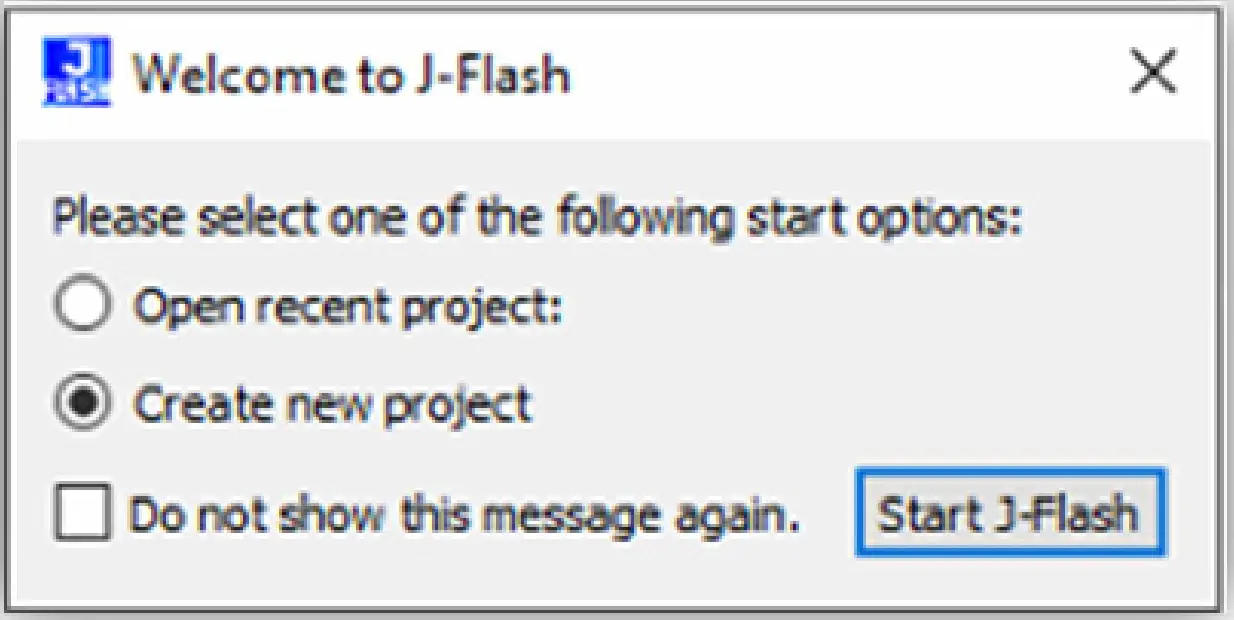 - Open the SEGGER J−Flash and select “Create new project” then “Start J−Flash”