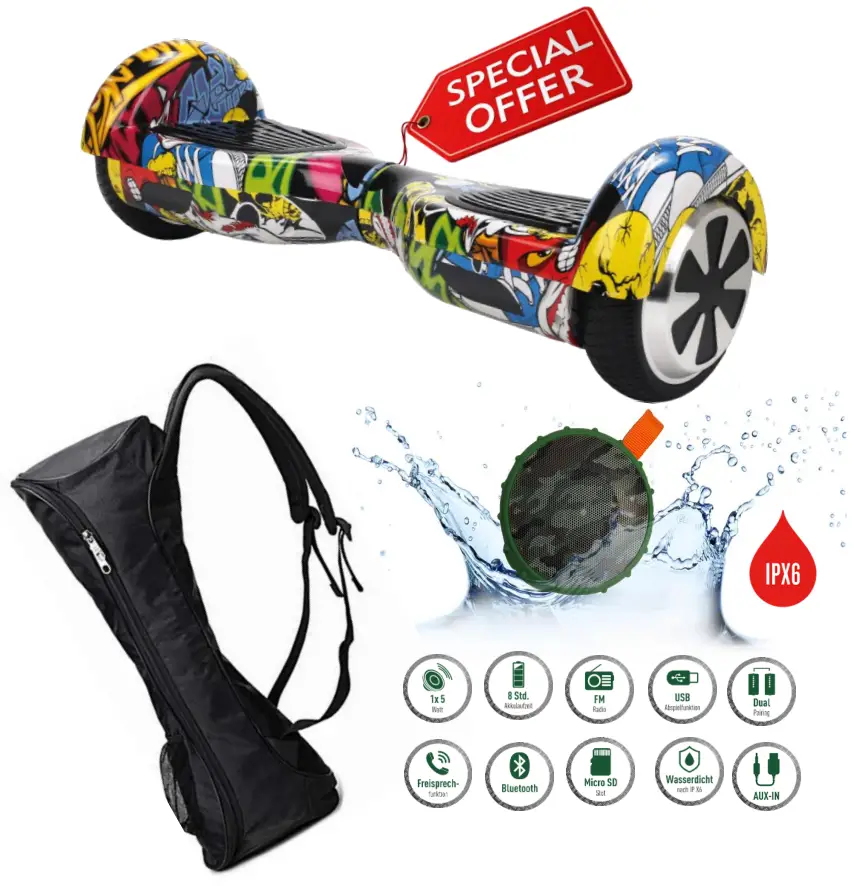 The balance board is equipped with two electric motors that deliver 2 x 200 watts of power. You can reach a maximum speed of up to 12 km/h is possible with one battery charge.