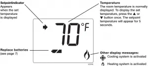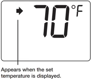 Press the ▲ or ▼ button to adjust the temperature. The setpoint temperature is displayed while you are setting the temperature and for the next 5 seconds. The display will then return to the room temperature