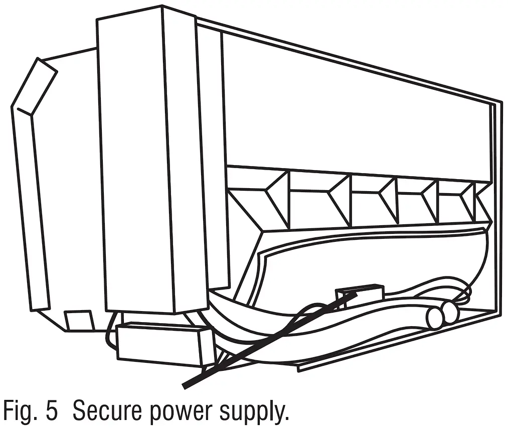 - Tuck the power supply into the line chase on the back of the AC unit or place it under the control box or other secure location. (Figure 5.)