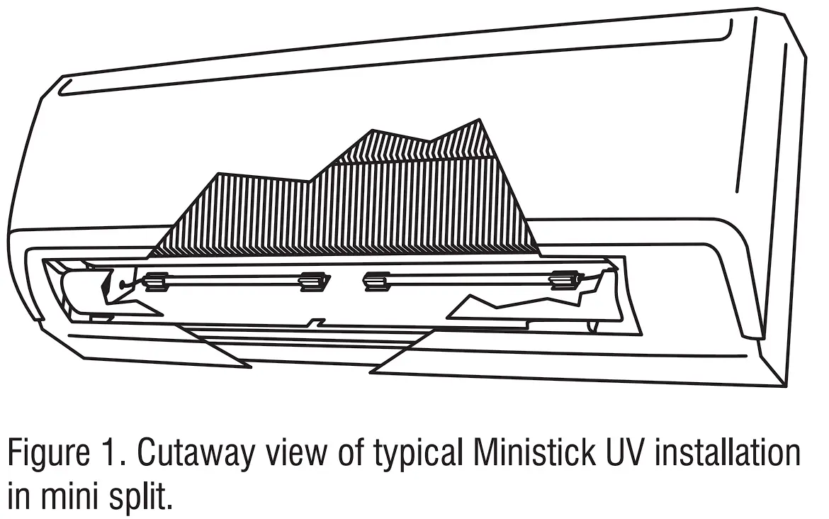 This device is typically used in mini split systems and other limited space applications. Because space is tight, the best place for mounting the UV lights is usually inside the supply vent with the light shining onto the blower wheel (which is prone to the worst mold growth.)
