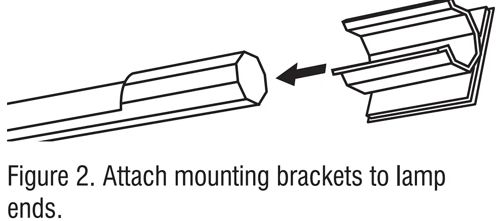 - Determine the best location for the UV lamp brackets and clean the area. Slide the mounting brackets onto the ends of UV lamps. (Figure 2.)